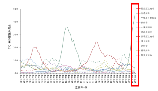 数据来源:《全国急性呼吸道传染病哨点监测情况(2025年第47周)》
